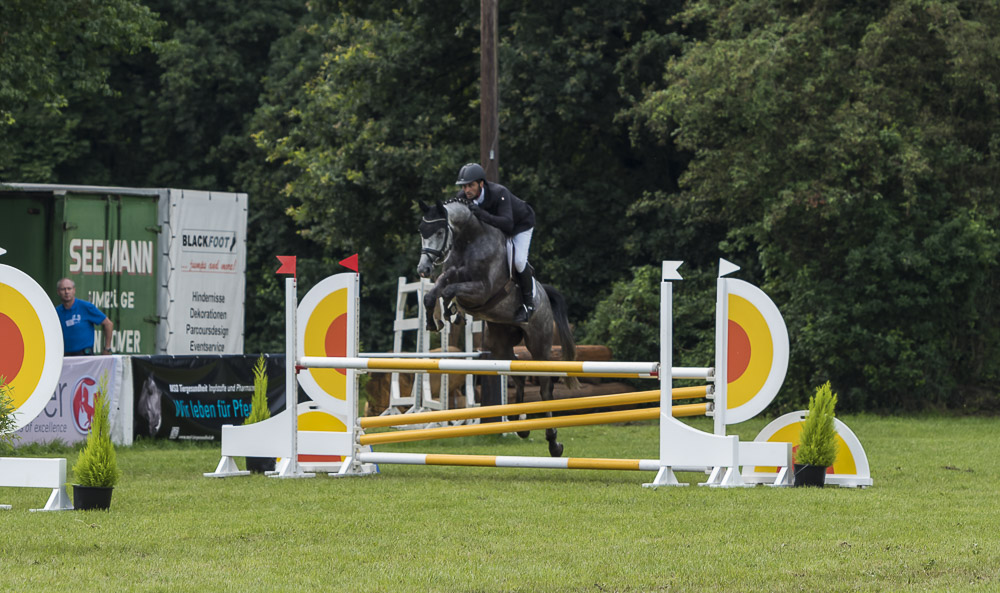 live erleben. Im professionellen und feinen Beritt von Fabian Lipsky konnte er schon Turnierluft schnuppern und hatte nun als “Saisonziel" Hannover. In der Sprpf A für 4 Jährige überzeugte er auch gleich mit 8,0 und dem 2. Platz. Am Samstag leistete er sich dann, etwas übereifrig, 2 Fehler und landete auf der 1. Reserve. In der darauf folgenden Sprpf L, seinem ersten L-Springen, hatte er zwar auch einen leichten Fehler, meisterte die technischen Aufgaben aber gut und wurde mit dem 3. Platz belohnt. Wir sind sehr zufrieden mit diesem unglaublichen Kerlchen und freuen uns, wenn er bald wieder für die Ferien und weitere Grundausbildung bei uns ist. Vielen Dank Fabian und Katharina Lipsky für alles, was ihr für Höhenflug tut!